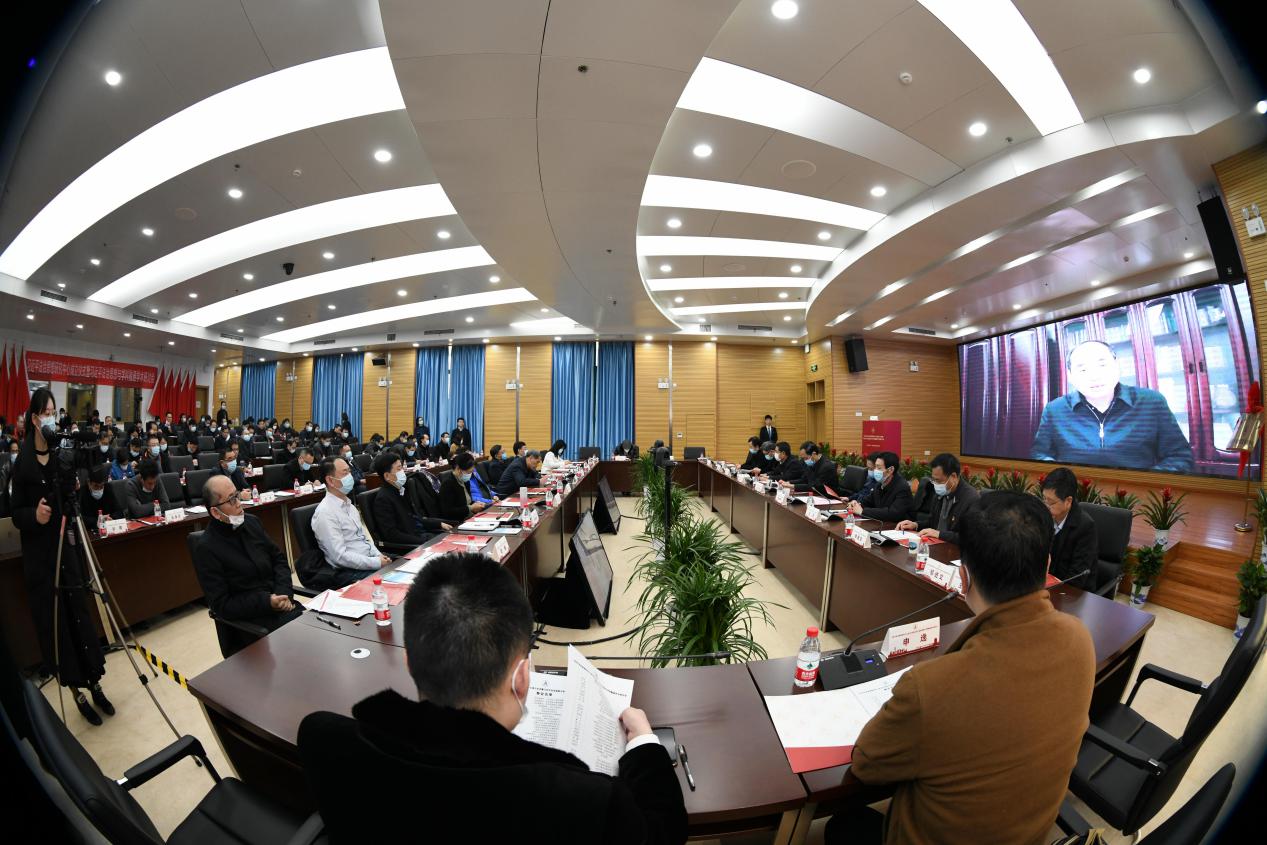 教育部政策法规司司长邓传淮以视频形式发言祝贺,湖北省社科院院长刘光远,湖北省委改革办专职副主任江国志,湖北省法学会秘书长王龙,湖北省委政法委二级巡视员刘恩钧及有关单位同志,全体在校校领导,校学术委员会全体委员,学校二级教授代表,各职能部门、各院系主要负责人,省级及以上科研基地平台负责人代表出席会议。副校长邹进文主持会议。