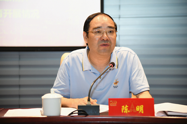 陈明对学校党史学习教育第一阶段工作进行了全面系统地总结。他指出,自3月份党史学习教育启动以来,学校党委按照教育部党组决策部署和工作要求,在教育部党史学习教育高校第十巡回指导组的指导下,明确目标、认真组织、统筹推进、上下联动、师生协同,推动党史学习教育扎实有序开展,取得了阶段性成果:加强组织领导,分层压实责任;严格对标对表,加强分类指导;坚持以学为先,夯实思想基础;加强政治引领,传承红色基因;组织专题培训,提升学习实效;办好实事好事,用心服务师生;加强宣传引导,营造浓厚氛围。陈明传达了《中共教育部党组关于教育系统认真学习贯彻习近平总书记在庆祝中国共产党成立100周年大会上的重要讲话精神的通知》精神,以及教育部党史学习教育高校第十巡回指导组组长欧可平在湖北七校党史学习教育工作推进会上的讲话精神,并就欧可平对下一步工作要求提出的“5个继续”进行了重点介绍。要继续推动深化党的创新理论的学习,推动党史学习教育与做好学校的中心工作“两促进、两不误”,把握好党史学习教育关键少数、关键事项,推动“我为群众办实事”实践活动,调动全校师生党员的积极性、开发展新局。