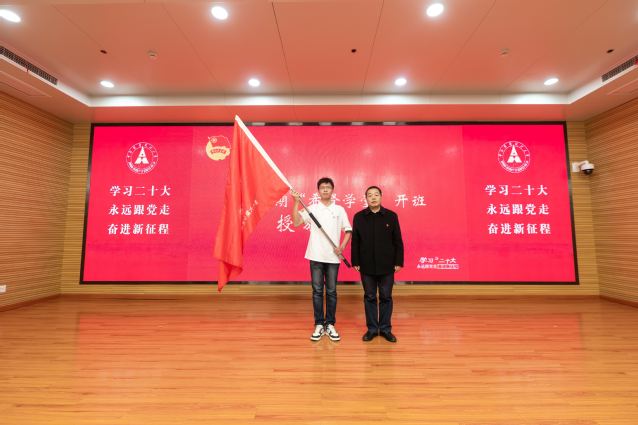 在联学会正式开始前,举行了简短的第十六期“希贤学堂”开班仪式。校团委书记黄小妹主持开班仪式并介绍了“希贤学堂”的青年政治骨干培训体系和“青”字招牌特色,刘仁山为学校青年骨干宣讲团专职团干部代表赠送了《党的二十大报告辅导读本》,栾永玉为第十六期“希贤学堂”学员代表授旗。