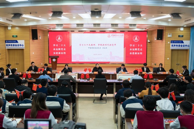 11月17日,在学校同声传译会议室,校党委书记栾永玉深入青年师生,开展了一场别开生面的师生联学会,生动宣讲了党的二十大精神。我校湖北省青年宣讲团讲师、专职团干代表和“希贤学堂”全体学员参加了联学会。活动由校党委常委、副校长刘仁山主持。