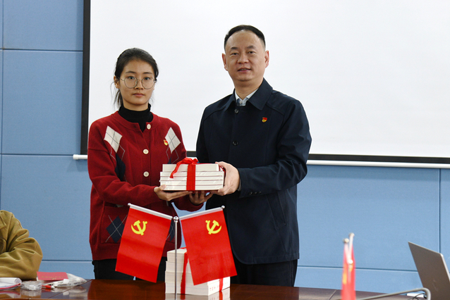 在联学联建活动最后,周巍同志向新闻与文化传播学院本科生第二党支部赠送理论学习书籍。全体党员表示,通过此次联学联建活动,收获颇丰。“周巍书记援引党史故事、校史故事,为我们上了一堂生动的党课,内容非常丰富,我更加明白了作为一名新闻人的责任与担当。”陈华靖说道。