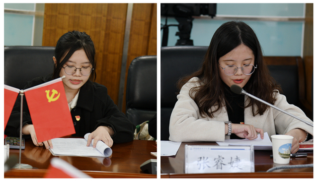 新闻学院本科生第二党支部党员代表陈华靖、张睿婕同学分别发言。陈华靖同志表示,党的二十大报告中提出的“加强全媒体传播体系建设,塑造主流舆论新格局。健全网络综合治理体系,推动形成良好网络生态”令自己印象深刻,作为新闻学院的学生,将认真学习领会、准确把握二十大报告的精神实质,用理论武装头脑,努力增强“脚力、眼力、脑力、笔力”,当好“传声筒”,讲好中国故事。张睿婕同志表示,自己的家乡是浙江嘉兴,从嘉兴南湖到中南大晓南湖,从红船精神到中南大精神,深刻感悟到作为新时代青年大学生使命光荣、责任在肩。“我想用手中的笔,书写当代中国故事,为中华民族伟大复兴贡献力量。“她说道。