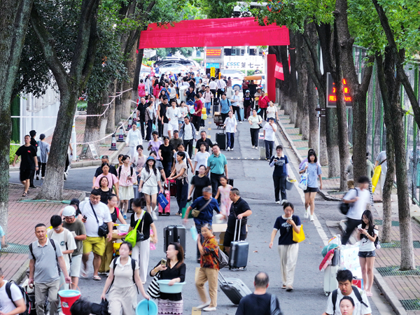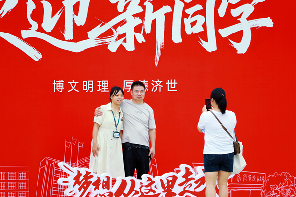 “截至目前报到多少人?”“研究生新生中省外生源占比如何?”“有没有特殊情况需要协调?”在迎新总站和各迎新点,2000多名工作人员和800多名志愿者在为迎新工作忙碌不已。他们统一着装,引导新生完成报到注册,耐心地为新生解答各种困惑。校领导驻足了解报到流程,询问实时报到数据和迎新工作进展情况。校领导高度肯定工作人员和志愿者的辛勤付出,勉励他们做好新生的知心人、热心人、引路人,为新生提供优质服务,及时解决新生的困难。