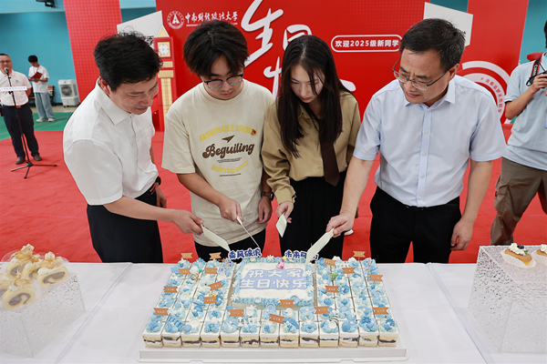 “祝你生日快乐,祝你生日快乐……”,临近中午,首义校区迎新总站内响起欢快的歌声。校领导一行与当天过生日的新生共同切开生日蛋糕,温馨的氛围让初入校园的学子倍感亲切。作为学校坚持6年的迎新传统,今年共有18名新生在报到日当天迎来生日,14名新生代表到场参加这场特殊的集体生日会。
