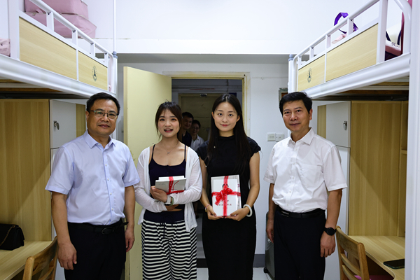 “家在哪?”“哪里毕业的?”“到学校就是到家了”……在南湖校区环湖9栋和首义校区40栋、33栋、26栋,校领导一行与新生及家长亲切交流,对新生们的到来表示欢迎。校领导勉励他们多与同学交流,多参加校园活动,尽快融入大学生活。校领导还为部分新生送去含有文具套装和经典书籍的“暖心大礼包”。“请家长们放心,学校会像照顾自己孩子一样照顾好学生。”校领导对陪同报到的家长说。家长们纷纷表示:“把孩子交给中南大,我们一百个放心!”