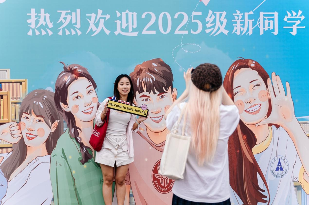 学校通过布置校园内各类创意展架和标语,营造浓厚热烈的迎新氛围,设置多种线下趣味迎新活动,打造沉浸式报到体验,帮助新生快速熟悉校园。首义校区中南楼门前有由2025级本科新生的名字组成的“热烈欢迎新同学”展架吸引了不少同学来打卡。