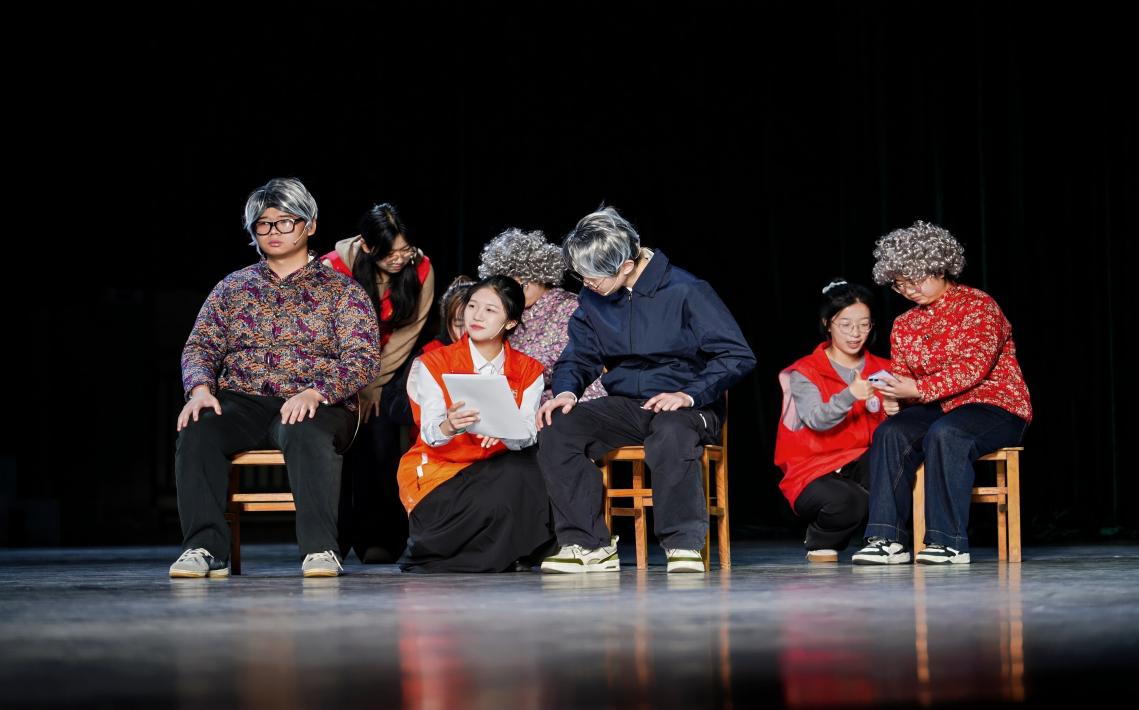 颁奖典礼上,团队受邀展演情景剧,聚焦“帮助老年人识破AI骗局”,以通俗讲解和图文手册开展防诈科普,生动展现青年志愿者助力跨越“数字鸿沟”的担当。